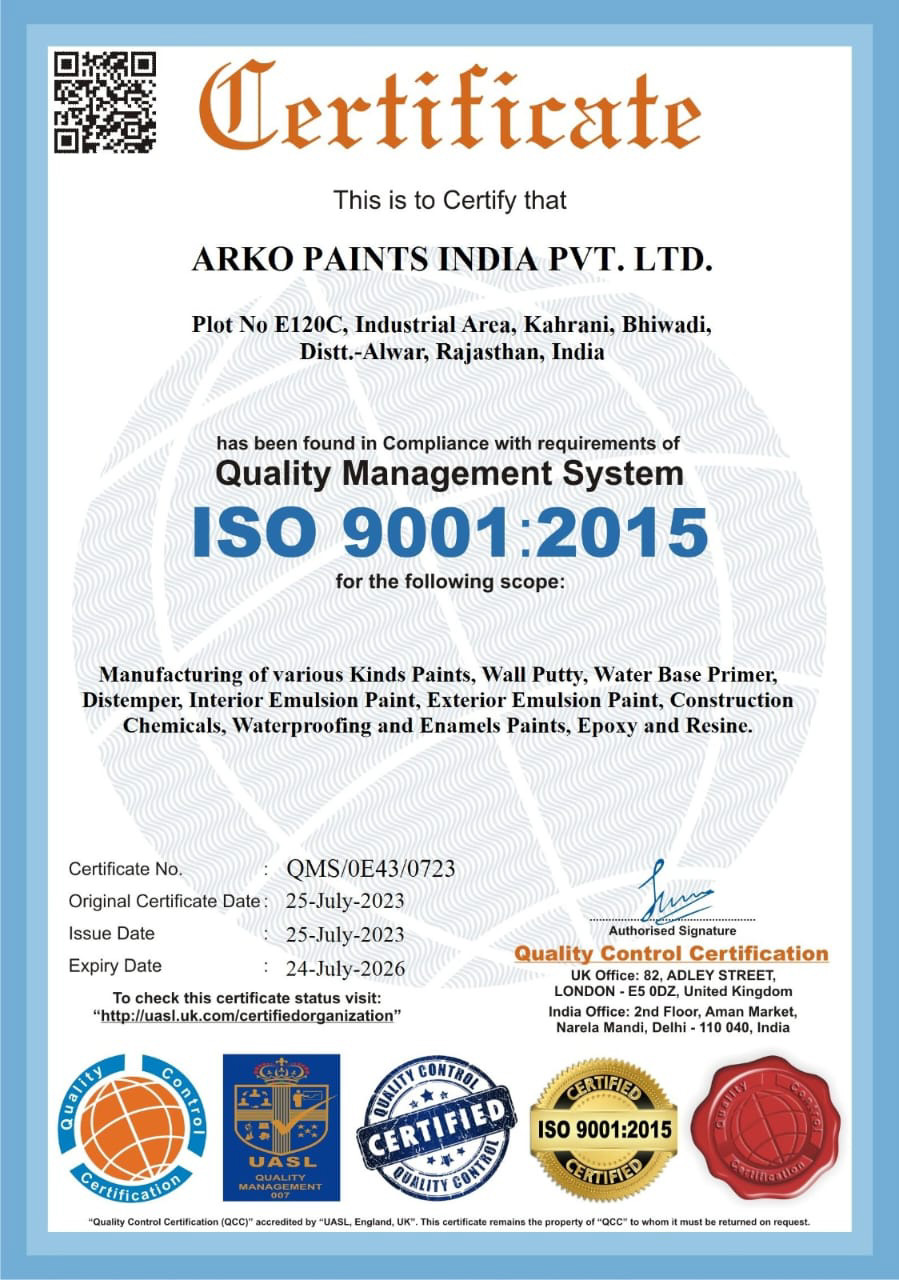 At Arko Paints India Pvt. Ltd., we are committed to excellence, driven by cutting-edge technology and a deep understanding of customer expectations. Our state-of-the-art manufacturing facilities and rigorous quality control processes ensure that each product delivers unmatched performance and durability. We believe in sustainable practices, and our eco-friendly paints are designed to minimize environmental impact while providing maximum coverage and protection.