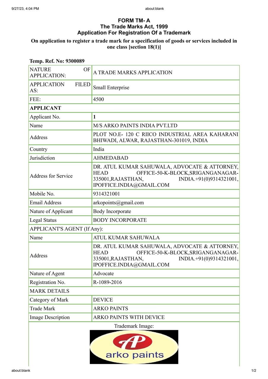 Arko Paints India Pvt. Ltd. is a renowned name in the paint and coatings industry, dedicated to providing high-quality, innovative, and eco-friendly solutions for all your painting needs. Established with a vision to transform spaces with vibrant colors and superior finishes, we specialize in a wide range of products, including decorative paints, industrial coatings, and specialty coatings tailored to meet diverse customer requirements.